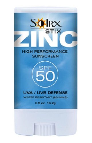 SolRx's Zinc Stix is our new broad spectrum SPF 50 zinc oxide sunscreen stick! Specially designed for easy application and convenient carrying, our zinc sunscreen stick goes on clear and leaves no residue. Our pocket-sized Zinc Stix are compact, making them ideal for sport enthusiasts who have at least partial skin coverage while they're competing. SolRx Zinc Stix SPF 50 is water resistant for up to 80 minutes and provides essential UVA/UVB protection from the sun's harmful rays.Feature