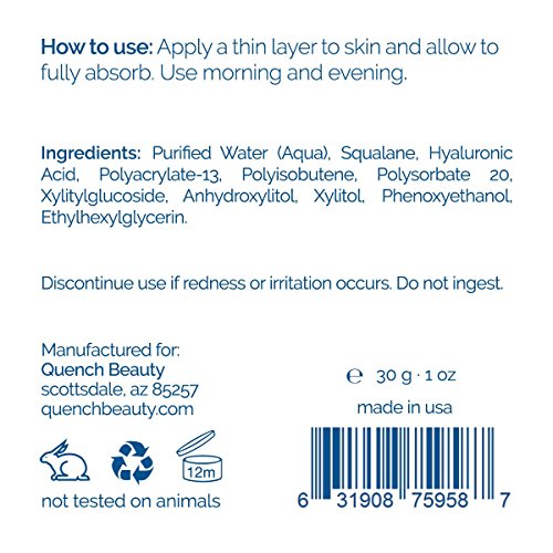 Quench Beauty Hyaluronic Moisturizing Cream with Squalane, 1 oz