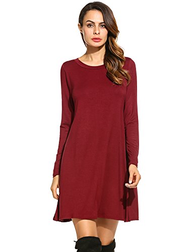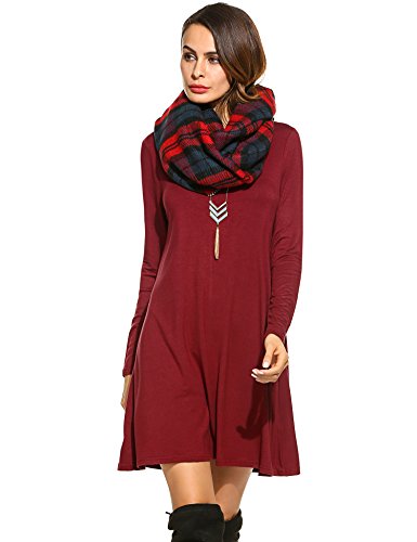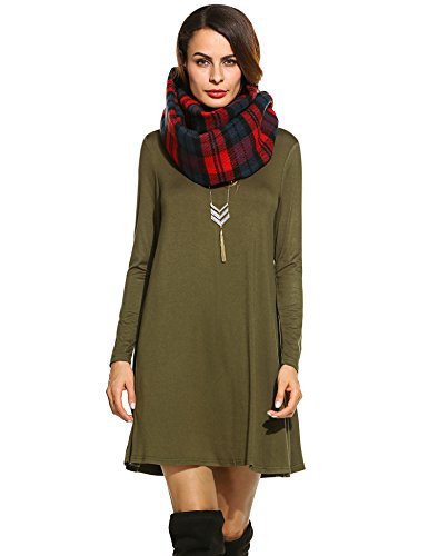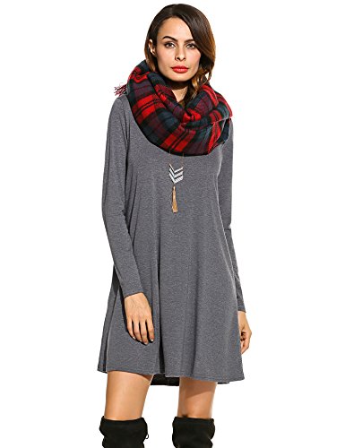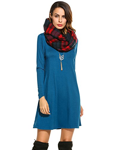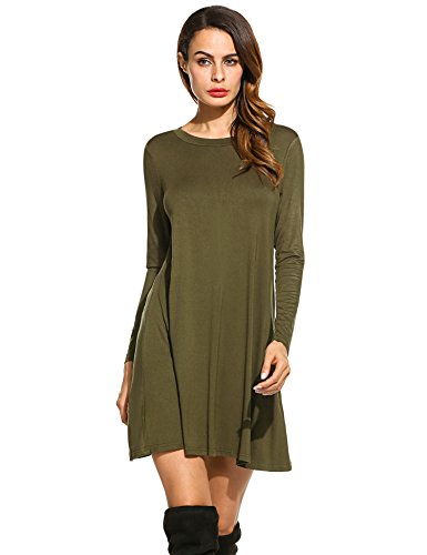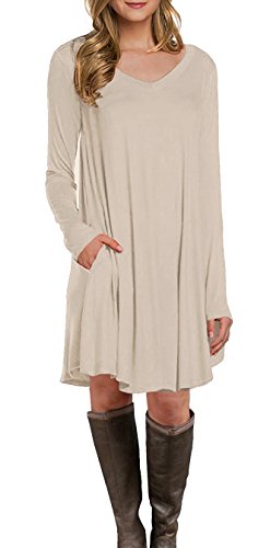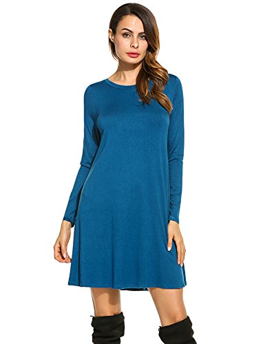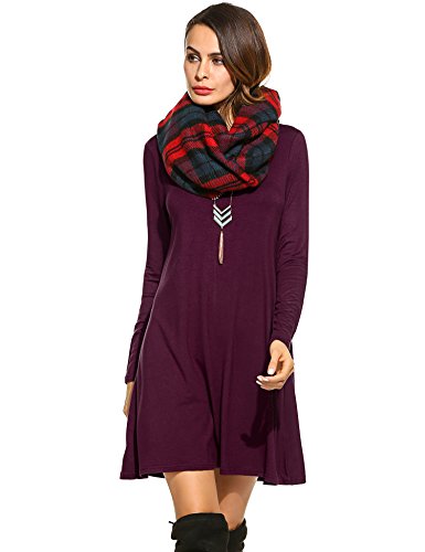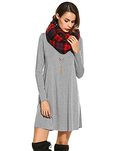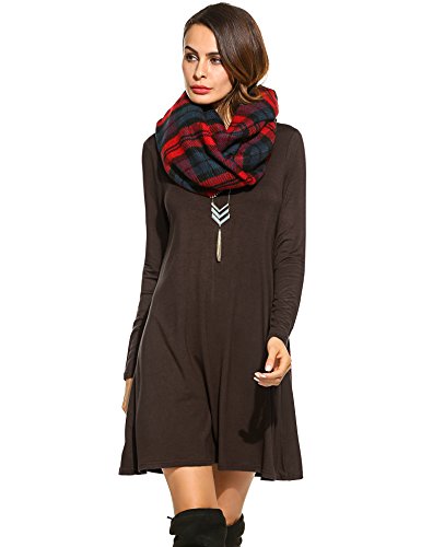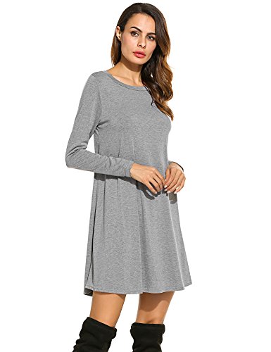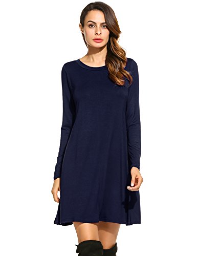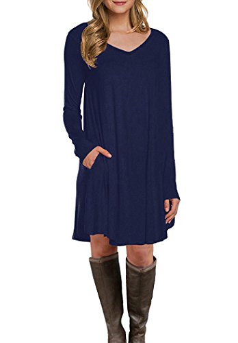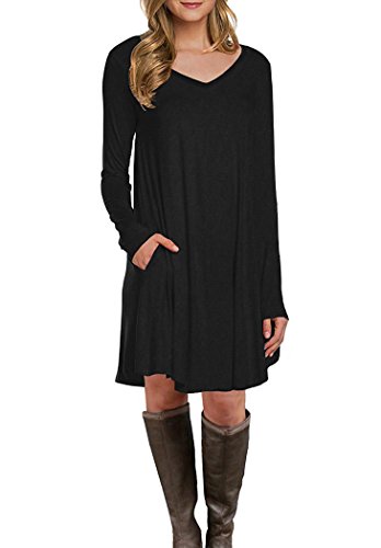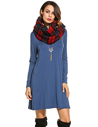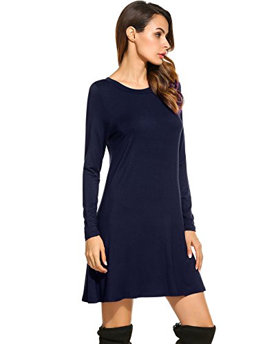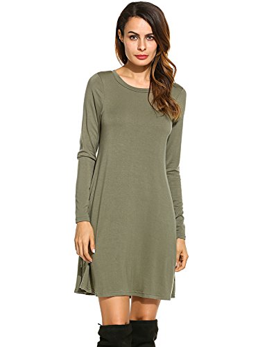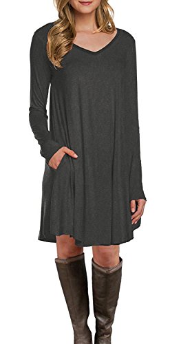 Women's Long Sleeve Pocket Casual Loose T-Shirt Dress