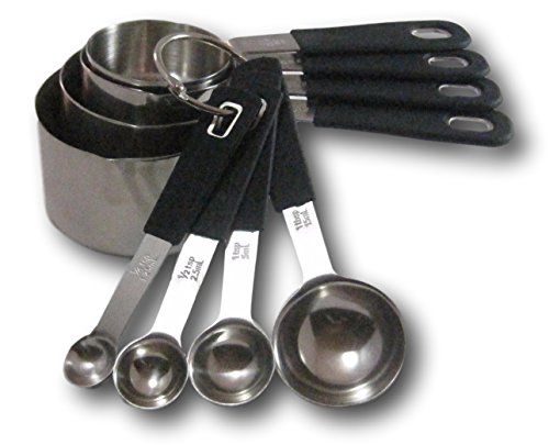Studio : plumwood and vine Publisher : plumwood and vine Binding : Kitchen Product Description This beautiful 8 piece set will compliment every kitchen! The set is constructed of durable stainless steel and the high quality silicone handles come in sophisticated black! Unlike most silicone handles that can be bulky, these handles are flat for easy storage. The set includes: 1 cup measuring cup, 1/2 cup measuring cup, 1/3 cup measuring cup, 1/4 cup measuring cup, 1 Tablespoon, 1 Teaspoon, 1/2 teaspoon, 1/4 teaspoon 0