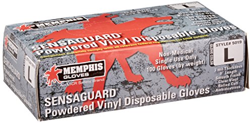 MCR Safety 5019L Vinyl Disposable Industrial Food Service Grade Powdered Gloves, Large, 100 gloves