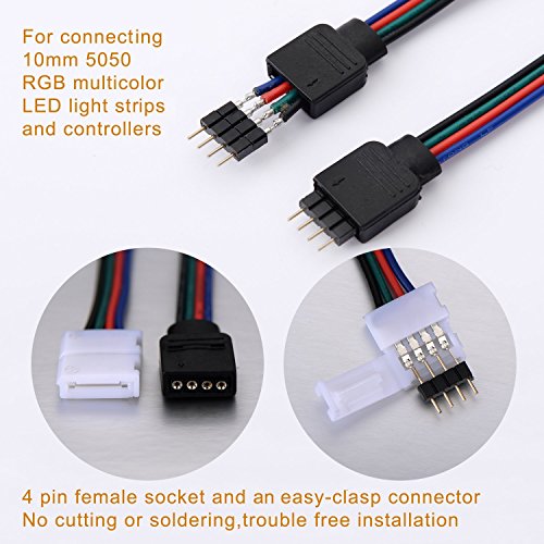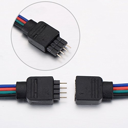 16.4FT(5M) 4-pin RGB LED Strip Extension Cable,LED Strips Connectors Kits with 4 Strip Jumpers,L-Shape Connecters for 5050 Flexible RGB LED Strip Light
