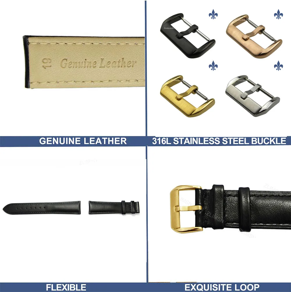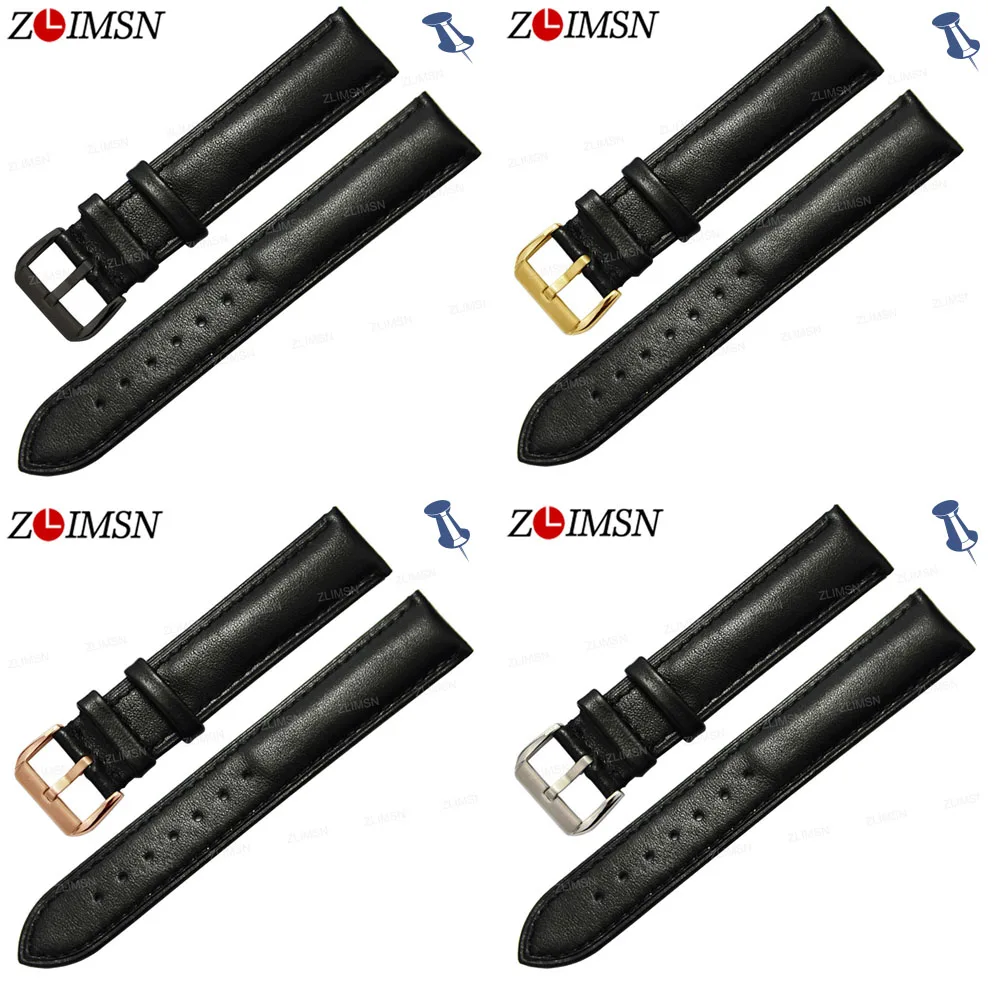 ZLIMSN 정품 가죽 시계 줄 블랙 스트랩 블랙 스티치 부드러운 시계 밴드 스트랩 18 19 20 21 22 24 미리메터 relogio feminino