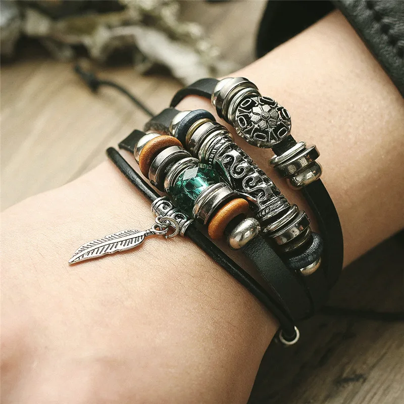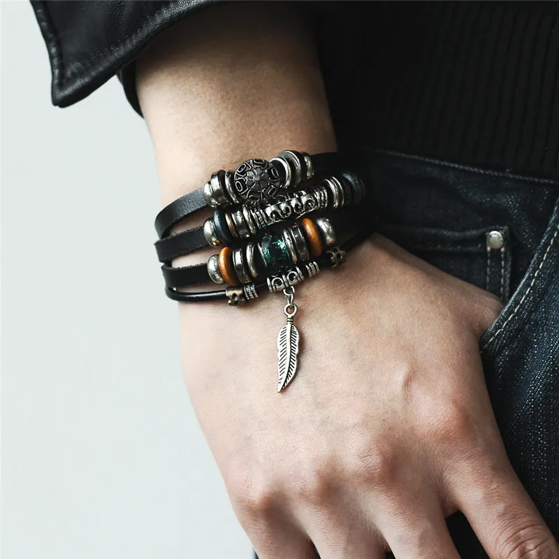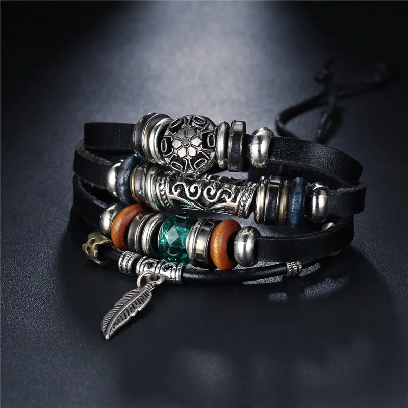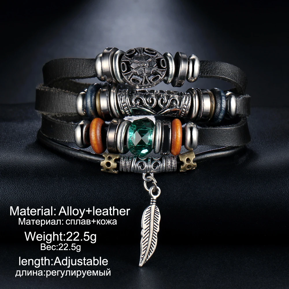Function:Vintage Wing Hook Leather Bracelet For Men Woman