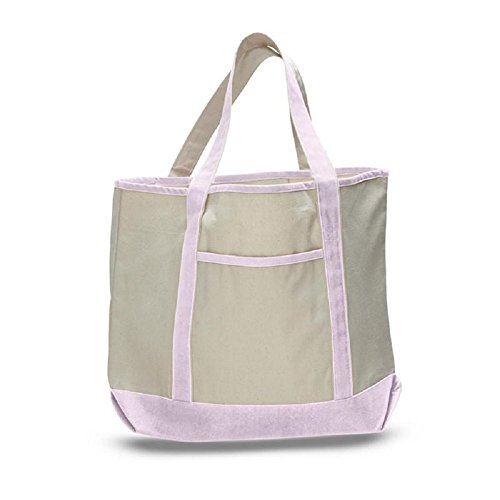 Canvas Tote Beach Bag, Assorted Colors - Heavy duty cotton, shoulder straps, zippered top closure, canvas bags are double-stitched for durability to handle wet towels and beach gear.