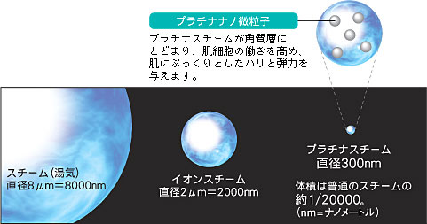 ●プラチナを含んだナノサイズのスチームが、角質層の奥に浸透