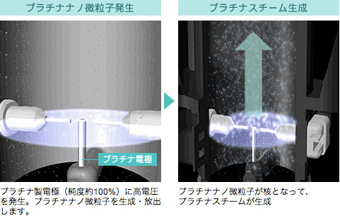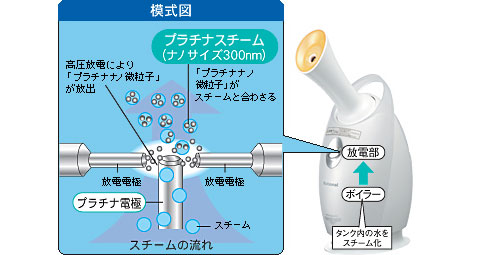 ※1 : 平成18年8月24日発表。家庭用美顔器において、プラチナナノ微粒子をスチームに配合させる機能。