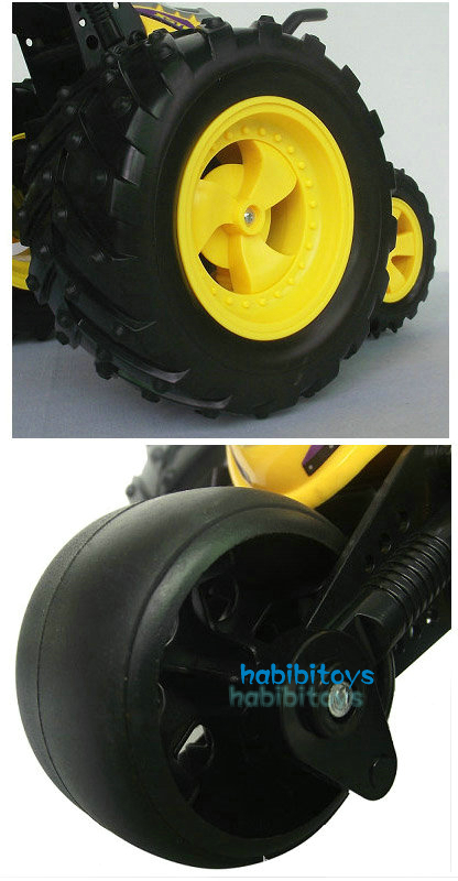 ★ 12.5cm large rubber tires, flexible, buffering effect is superior; cross-country special deep lines design, grip performance better