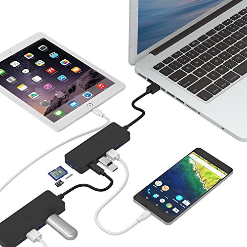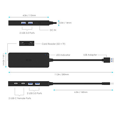 6 Port USB Hub, ICZI 4-Port USB 3.0 Hub with Card Reader (SD+TF) and 2 USB-C Ports for Data Transfer for New MacBook, Chromebook Pixel,Windows and More