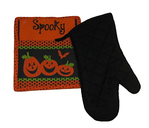 Halloween Embroidered Spooky Dish Towel Potholder and Oven Mitt Bundle Set (3 Items)