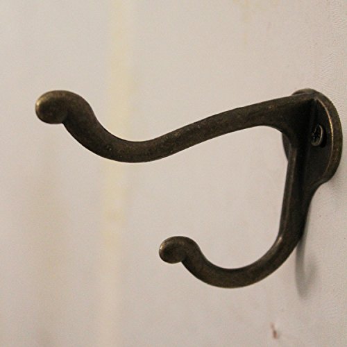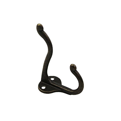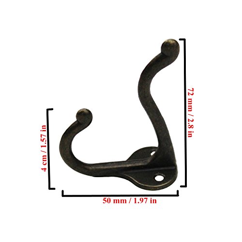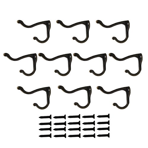 LJY 10 Pieces Double Prong Robe Hooks with Screws Pack Retro Wall Mounted Coat Hangers Over Door
