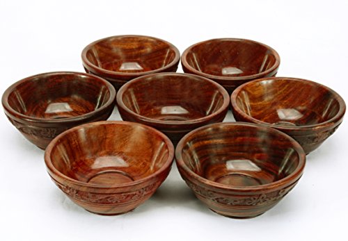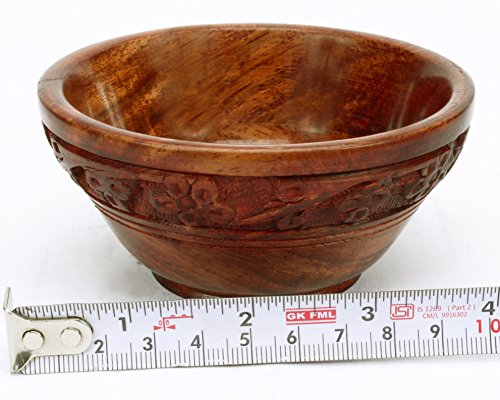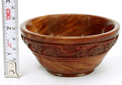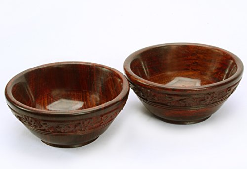 Pair 2 Pcs Rosewood Carved Bowls 4"Dia Vintage India Craft Gift Decor