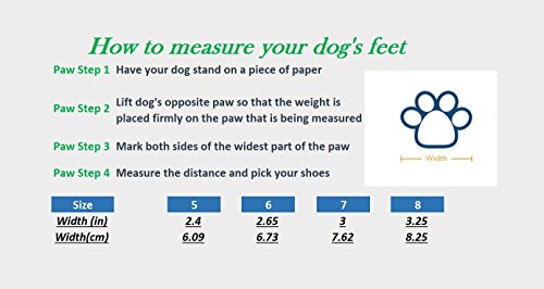 -. Feature : CHRISTMAS GIFT- Our shoes are a perfect christmas gift fir you furry BFF. Enjoy watching your pet running around your fireplace , stairways, hardwood floors wearing fancy shoes / BARK STAR QUALITY- Our shoes are well made with high quality fabrics sewn together and anti-slip sole. / ANTI-SLIP SOLE - The bottom of our shoes has an anti-slip rubber sole which gives your dog a good traction while playing. The shoes are great when walking on hot asphalt, gravel roads, mountain hikes, sharp stones. Also, your dog is going to love not having cold ice and snow freeze on his feet during winter time. / VELCRO BAND - Our waterproof shoes are a great boot choice for any dog. Two Velcro bands make so easy to put on or take off while holding to your dog's foot securely through running and playing. In addition, out Velcro bands are reflective which works really well when you walk your dog in the evening. / PAW SIZE - Please use the chart provided to measure your dog's feet