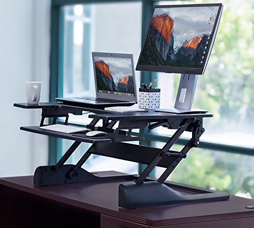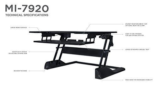 -. Title : Mount-It! Standing Desk Sit-Stand Desk Converter 41 Inch Wide for Laptop, Desktop, Height Adjustable, Ergonomic, Gas Spring Arm, Free Standing, Easy Installation, Black (MI-7925)