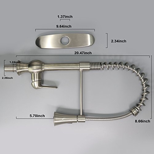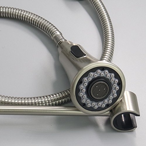 - ♠♠ DUAL FUNCTION SPRAYER Use Button on Spout to Toggle Between Spray and Stream.Pull-down spray wand features a long hose providing a long reach ,hot and cold water control kitchen faucet with the best pressured spray.