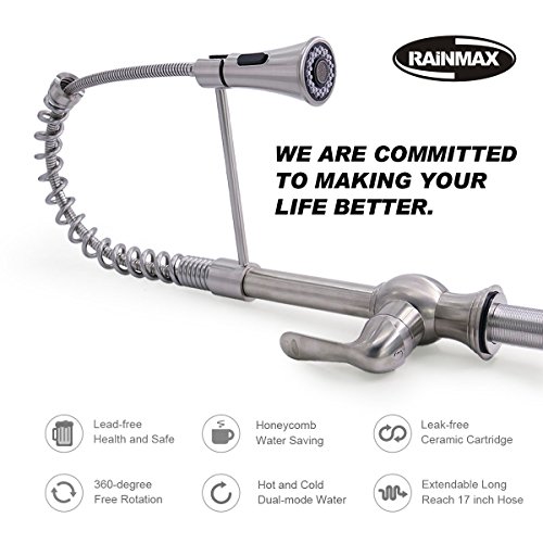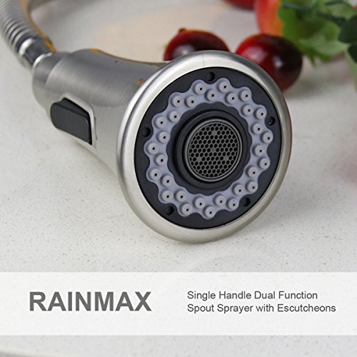 RAINMAX Kitchen sink faucet with Single Handle, Brushed Nickel, High-Arch, 360 Degree Swivel Spout, Pull-out Sprayer, Stainless Steel, Lavatory, Vanity, UPC NSF AB1953 Compliant(RAN-A-048)