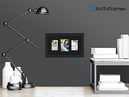 ArtToFrames Collage Photo Frame Double Mat with 1 - 5x7 and 2 - 4x6 Openings and Satin Black Frame