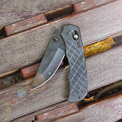 BELK [INVISIBLE MAN] FOLDING TACTICAL KNIFE BLACK & LIGHTWEIGHT (FIELD SPORTS) HUNTING SPEAR BLADE KNIFE 3" INCH & BELT CLIP