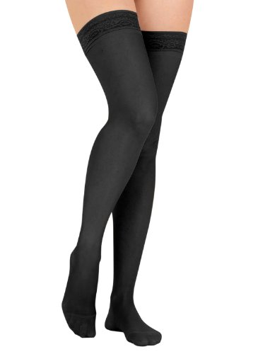 Studio : Dr. Leonard's Publisher : Dr. Leonard's Binding : Apparel Product Description "Designed for support and comfort, these medically formulated knee highs and thigh highs feature graduated compression with the highest compression at the ankle, and the lowest compression on top. These leg support stockings help enhance blood circulation to relieve the discomfort of varicose veins, leg fatigue, ankle swelling and other problems. These support stockings are made in the USA of comfortable, washable nylon/spandex. -Mild Support Stockings have a compression of: 8-15 mmHG-Moderate Support Stockings have a compression of: 15-20 mmHG -Firm Support Stockings have a compression of: 20-30 mmHG -Gradient Compression Support Knee-Highs: Measure circumference of calf for size: MED(12"-14 1/2"), LG(15"-16 1/2") or XL(17"-19"). -Gradient Compression Support Thigh-Highs: Measure circumference of thigh for size: MED(17 1/2"-19"), LG(19 1/2"-21 1/2") or XL(22"-28"). " 0