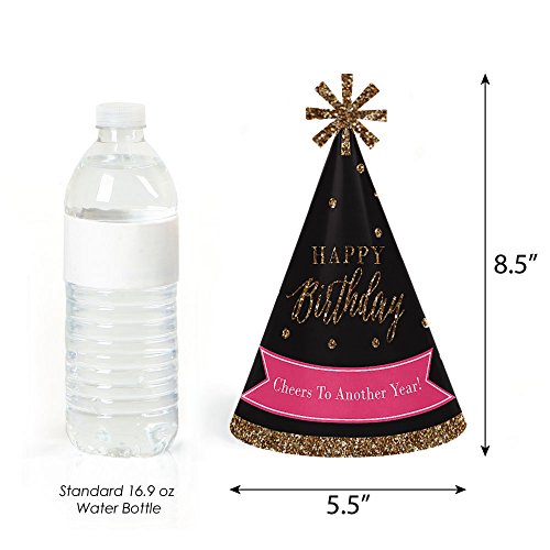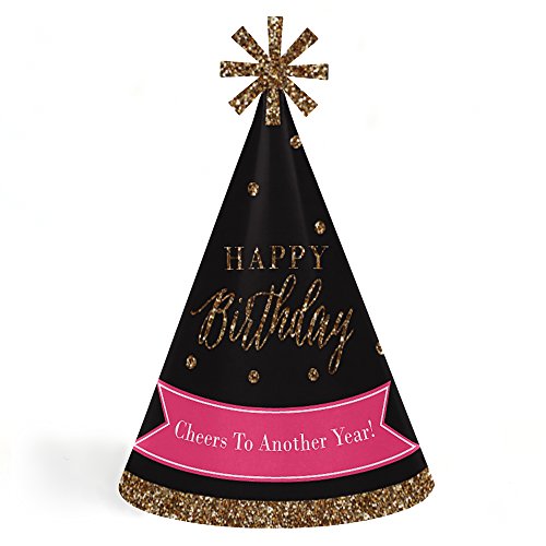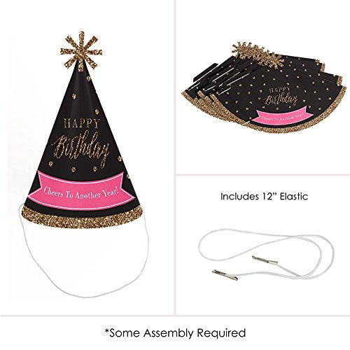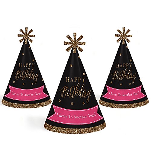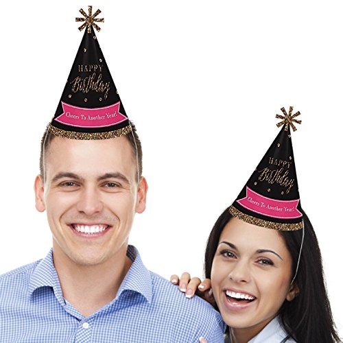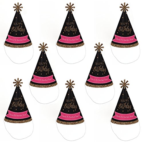 -. Title : Chic Happy Birthday - Pink, Black and Gold - Cone Happy Birthday Party Hats for Kids and Adults - Set of 8 (Standard Size)