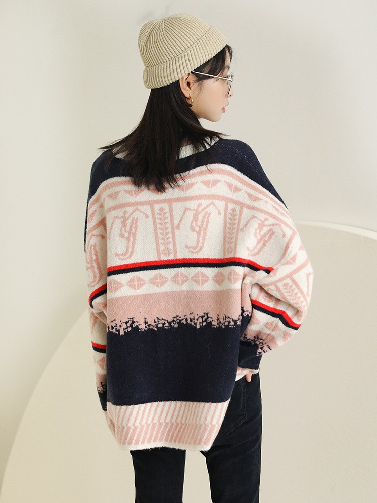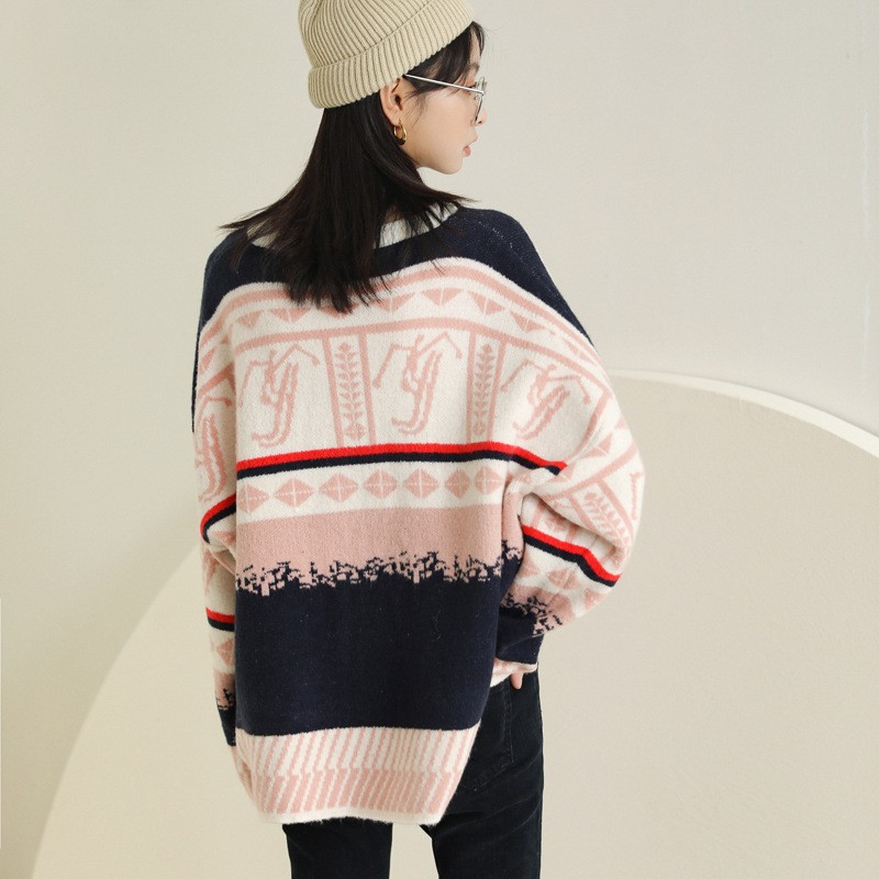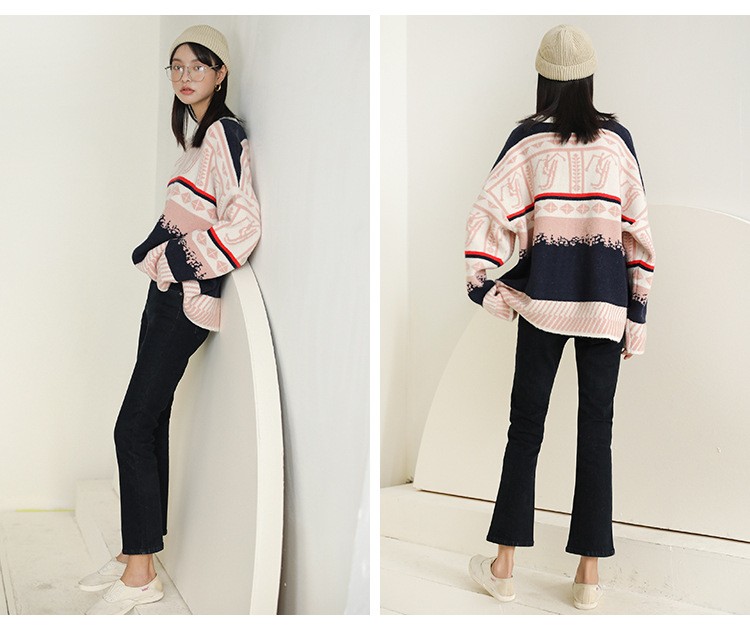 材質: 50%アクリル,50%スパンデックス色:写真通りサイズ(cm) F (フリーサイズ):着丈:61cm バスト:132cm 袖丈:40cm 注意:平置き実寸採寸のため生地の伸縮性や素材によっては多少の誤差が出る場合がございます。ご了承下さい。特徴:欧米風なセーターですが、普通のコートやスカートにもピッタリです。通勤通学にも適用です。手机端: