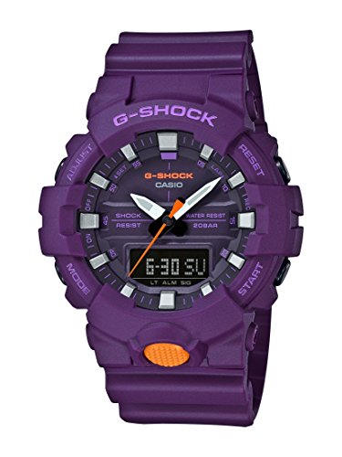 Casio G-Shock Mid-Size Analog Digital 200M Super illuminator Watch. At the touch of a button, the display can be brightly illuminated in a fashionable color. Shock-resistant construction protects against impact and vibration. A second location time can be set and called up. Ideal if you frequently make overseas calls. Stopwatch function - 1/100 sec. - 24 hours. The countdown timer emits a signal after a preset period of time has elapsed. The watch has a maximum timing capacity of 100 minutes and can be set in second-long cycles. 5 Daily Alarms- the daily alarm reminds you about recurring events with an acoustic signal at the time you have set. This model has 5 independent alarms for flexible reminders of important appointments. The button tones for using the mode button can be turned off. This means that the watch no longer beeps when switching from one function to another. Preset alarm or countdown timers remain active when the button tones are deactivated. Hand moving Feature- With a push of a button, hands are moving and permit a free visibility of functions like stopwatch or date. 12/24-hour timekeeping- Times can be displayed in either a 12-hour or 24-hour format. Automatic calendar- Once set, the automatic calendar always displays the correct date.