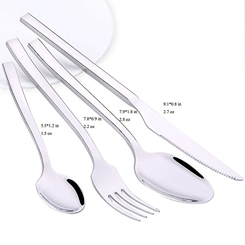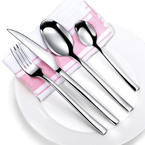 - This stainless steel flatware set includes dinner fork, steak knife, soup spoons and teaspoons (complimentary high-grade cotton napkins) , buy this tableware set for your new house and complete your collection.