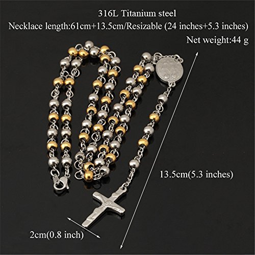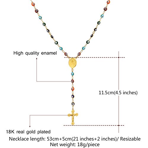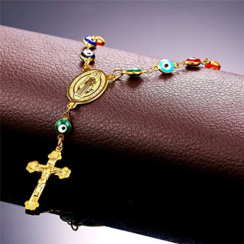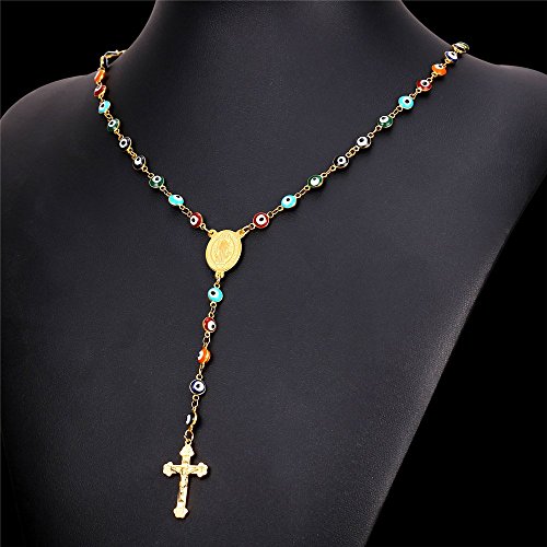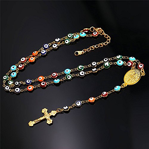 -. Title : Women Mens Colorful Evil Eye Beaded Rosary Necklace With Crucifix and Medal