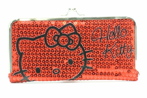 HELLO KITTY SANRIO DAZZLED SEQUIN KISS LOCK FRAME WALLET Orange