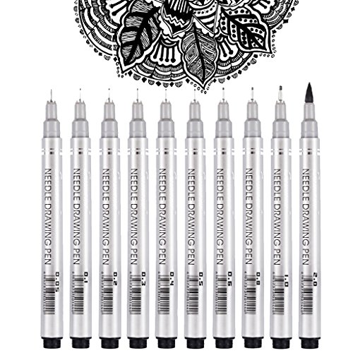 - ASSORTED TIP SIZES - 10 unique nibs sizes to choose from, Includes 9 micro nib tip sizes: 0.2mm, 0.25mm, 0.3mm, 0.35mm, 0.4mm, 0.45mm, 0.5mm, 0.6mm, 1.0mm. 1 Brush tip sizes: 2.5mm. Different size nibs for your need. Great choices for artists, technical drawer, caligraphy writers, illustrators, engineers, students and teachers