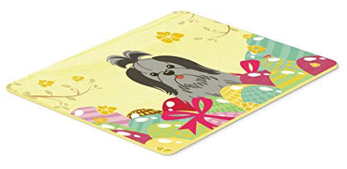 Caroline's Treasures Easter Eggs Shih Tzu black Silver Kitchen or Bath Mat 20x30, 20Hx30W, Multicolor