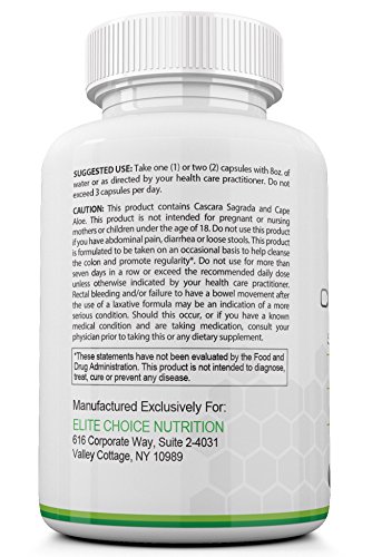 -. Feature : PURIFY, DETOXIFY AND CLEANSE: Better than Laxatives! Forget artificial chemicals! The 100% natural and proven herbal ingredients form a gentle and powerful digestive aid without the side effects. This product works wonders for stubborn bowels and will give you the internal cleansing you need to feel good again. / LOSE WEIGHT, GET YOUR NATURAL ENERGY LEVEL BACK AND IMPROVE YOUR MOOD: Jump start your healthy diet with our colon cleanse product that can remove excess waste and toxic buildup that may have accumulated over a period of years in your digestive system. You could also experience a drop in both weight and waist size. / THE IMPORTANCE OF A HEALTHY COLON: Your Colon helps with absorbing vitamins, minerals and nutrients which is vital to a person's well-being. It also helps to rehydrate your body. Environmental toxins,alcohol, poor diet as well as other factors can all contribute to limiting your body's ability to manage waste and absorb nutrients effectively. / QUALITY GUARANTEED: Elite Choice Nutrition goes the extra mile to ensure our supplements are the highest quality possible. We use a TOP QUALITY, FDA registered and GMP certified facility where our products go through extensive quality control testing before being bottled and sold. CHOOSE A SUPPLEMENT YOU CAN TRUST! / LIFETIME MONEY BACK GUARANTEE AND WORLD CLASS CUSTOMER SERVICE: See Real Results or request a refund! When you buy you are protected by a 'no-questions asked' money back guarantee.