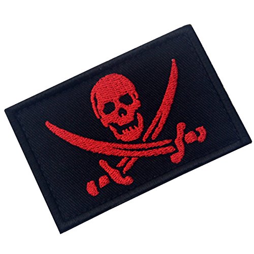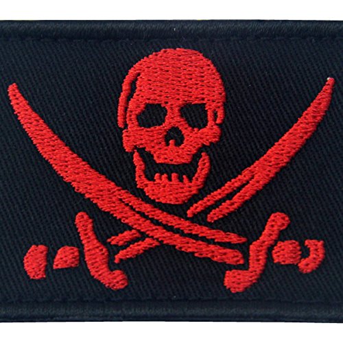 Pirate Flag Military Morale Fastener Hook & Loop Patch - Red & Black