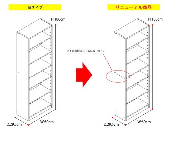 【商品について】■サイズ:外寸:幅60x奥行29.5x高さ180cm内寸:幅56.5x奥行28x高さ84.2cm/56.5x奥行28x高さ84.5cm■カラー:ナチュラル ダークブラウン ホワイト■素材:パーチクルボード、中密度繊維板(MDF)、プリント紙化粧合板※可動棚板4枚付き(3cmピッチ)■その他:・お客様組み立て家具