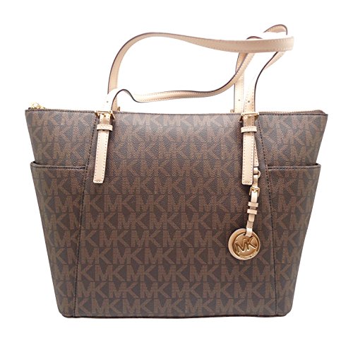 -. Binding : Apparel -. Brand : Michael Kors -. Color : Brown -. Department : womens -. EAN : 0190049646007 -. Feature : Michael Kors tote with signature PVC in brown and a top zip closure / Approx. 19 inch dual handles have an approx. drop of 9.5 inches / One slip pocket on each side of exterior / Interior features 3 regular slip pockets, 1 open cell pocket, and 1 zip pocket / Approx. dimensions: 11 in L x 11.5 in H x 3.75 in W -. ProductGroup : Apparel -. ProductTypeName : ACCESSORY -. Size : Large -. Title : Michael Kors Women’s Jet Set Item East West TZ Tote MK Signature PVC BROWN -. UPC : 190049646007