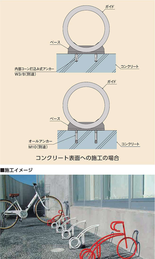 ●【注意事項】自転車を係留する際は、自転車のスタンドは立ててご使用下さい。施工間隔は最低600mm以上確保して下さい。