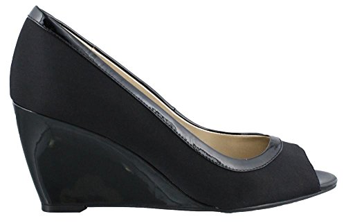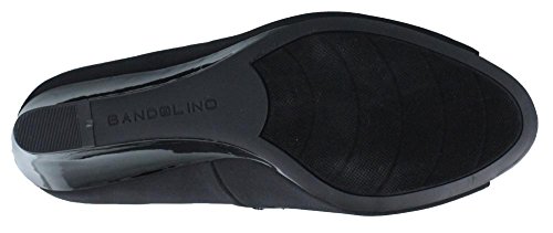Women's Bandolino, Takisha High Heel Pump Pump up your office outfit with these pumps! Fabric upper with a peep toe Slip on style for an easy on and off Manmade lining Cushioned footbed for added comfort 3 inch wedge heel Fabric and manmade outsole. Heel Height of 3.00 inchesFeature