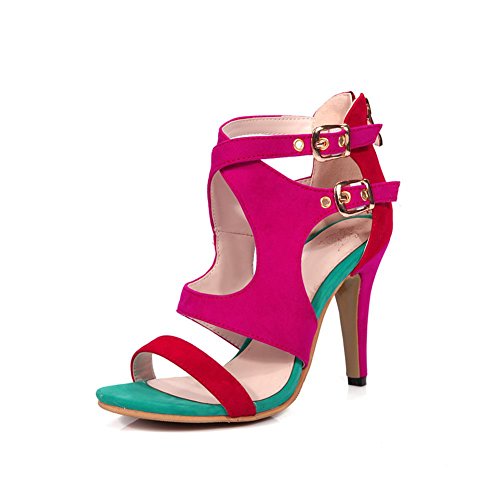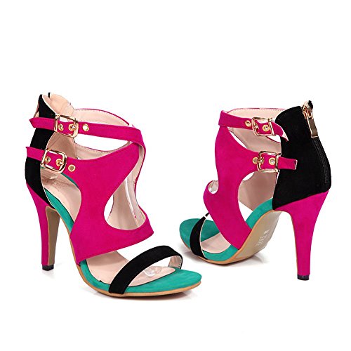 (DecoStain)/Women's/Sandals/DIRECT FROM USA/DecoStain Women's Fretwork Twin Buckles Thick High Heel Sandals