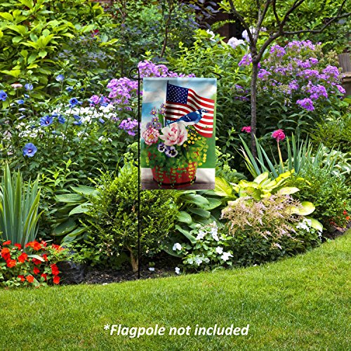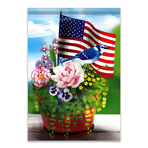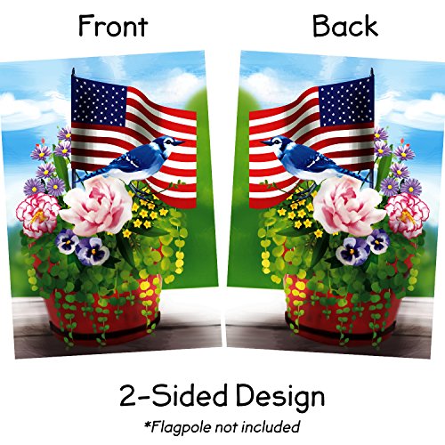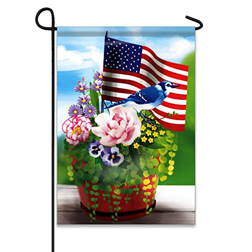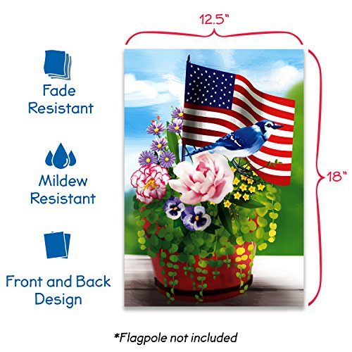 Jolly Flags American Flag with Flowers and Blue Jay 12.5"x18" garden flag - Double Sided Decorative Outdoor Flag