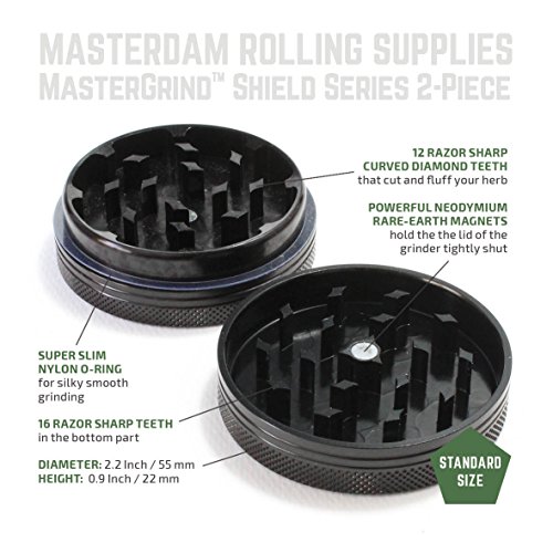 Masterdam Grinders 2-Piece Anodized Aluminum Herb Grinder - Standard 2.2-Inch Black