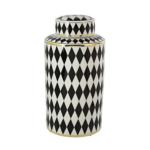 Benzara Strikingly Decorative Ceramic Covered Jar, White and Black