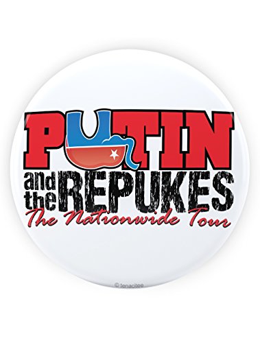 Studio : Tenacitee Publisher : Tenacitee Binding : Apparel Product Description Putin and the Repukes 2.25" Button by Tenacitee. Express yourself! Buttons are the perfect way to let the world know how you feel. Our buttons are designed, printed, and handmade at Tenacitee's studio in Oklahoma. Proudly made here in the USA! This 2.25" button has a metal shell with pinback and mylar cover to protect from scratches. Perfect to decorate your shirt, jacket, bag, or put anywhere else you want! It's a great gift or giveaway for parties. 0