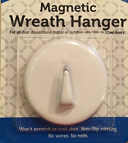 White Magnetic Wreath Hanger Holder Hook - For Steel Doors - No Nails or Wires! Holds up to 6 pounds.