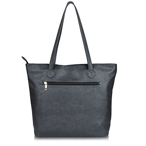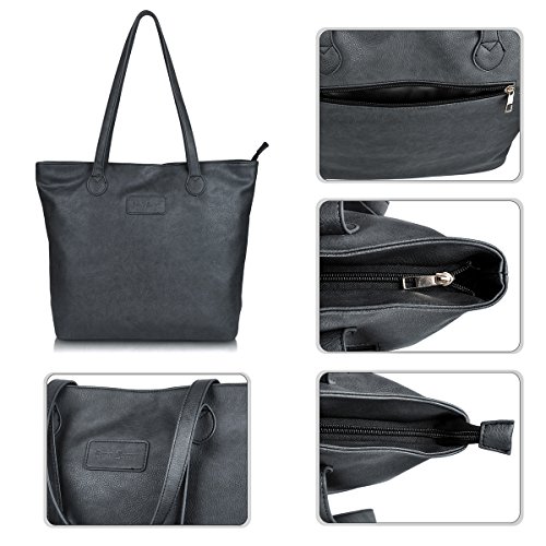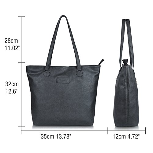 - INSIDE OUTSIDE POCKETS:The handbag with one main large capacity zipper pocket fit up to 15"laptops,books,iPad.three small inside pockets for cellphone,keys,one zipper pocket on back.