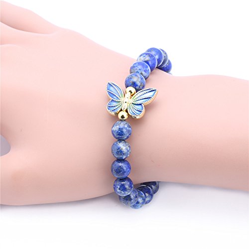 -. Title : 8mm Lapis Lazuli Sterling silver Cloisonne Enamel Butterfly Bracelet