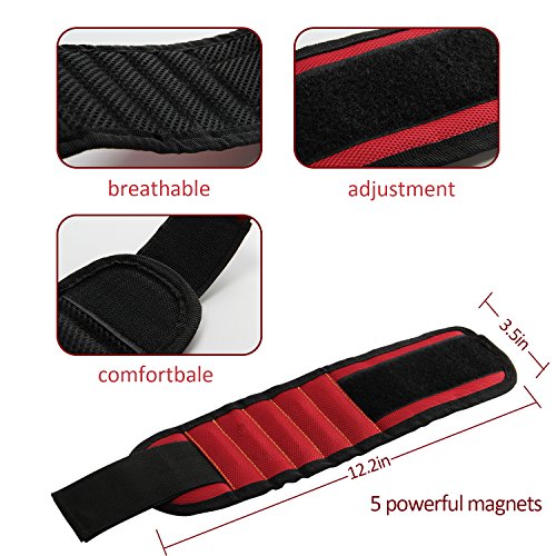 ANPHSIN Magnetic Wristband Embedded With 5 Super Powerful Magnets - Magnetic Wrist Arm Band for Holding Screws, Nails, Scissors, and Small Tools