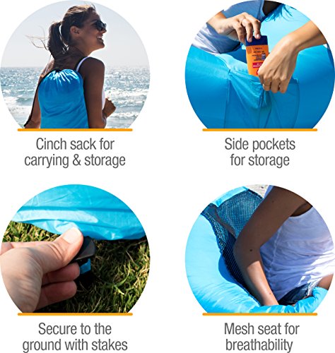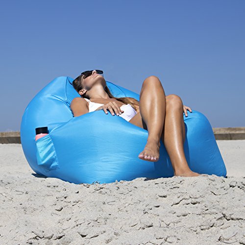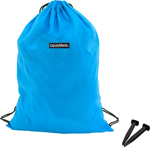 CleverMade QuikFill Outdoor AirChair: Lightweight Recliner Style Inflatable Lounge Chair with Carry Bag and Ground Stakes Included, Bright Blue