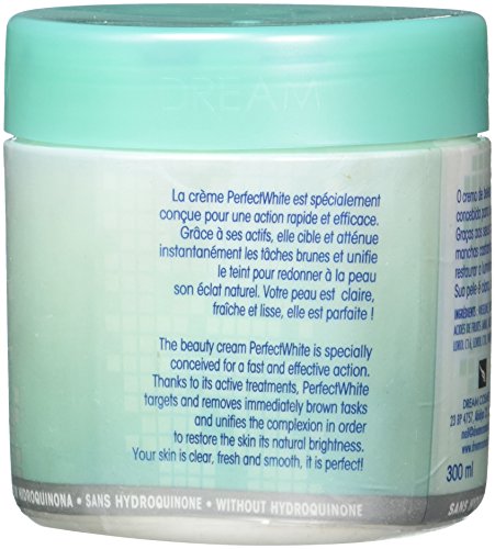 Perfect White Beauty Cream is specially conceived for a fast and effective action. Thanks to its active treatment, Perfect White targets and removes immediately brown tasks and unified the complexion in order to restore the skin its natural brightness. This item is perfect because your skin is clear, fresh and smooth like a baby's skin! Without Hydroquinone.