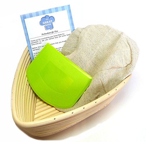 Banneton Proofing Basket Set (4 pieces) - Premium 9 Inch Triangle Bread Proofing Brotform, Dough Scraper, Linen Cloth Liner and Instructions by The Great Bake Co
