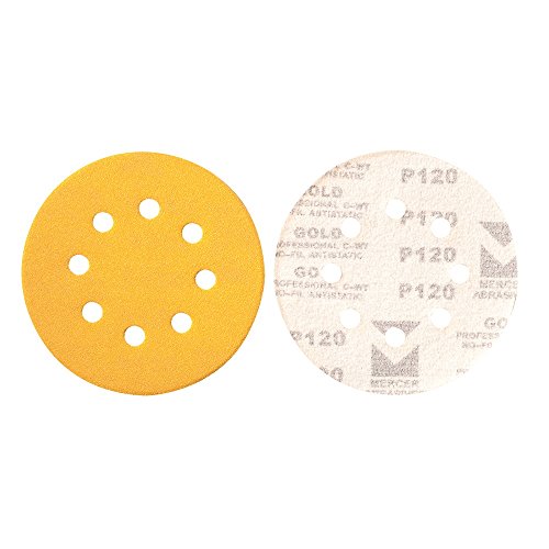 Mercer Industries 5538080 Hook & Loop Premium Gold Stearated Non-Loading Disc, Aluminum Oxide, 5" x 8 Dust Holes, Grit 80C, 50 Pack